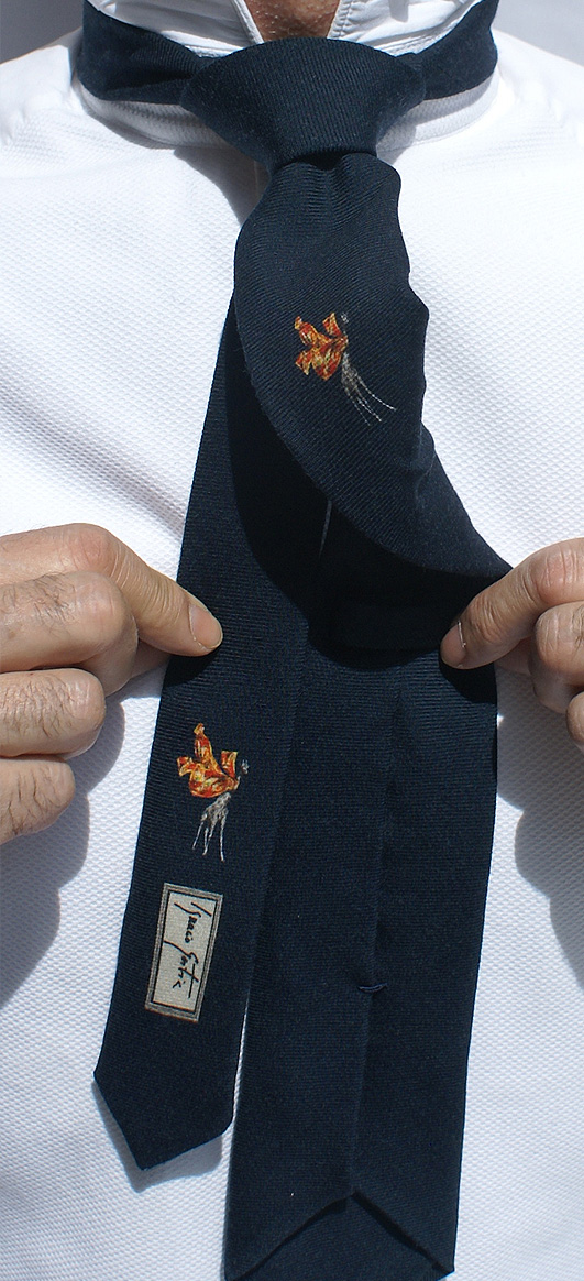 Confeccionada a mano en lana italiana y forrada en el mismo material, esta corbata combina ironía, clasicismo y precisión.