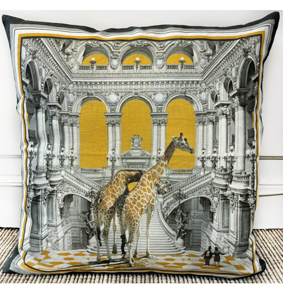 Dos jirafas irrumpen con elegancia en la majestuosa ópera parisina. Un capricho escenográfico entre mármoles, columnas y fantasía animal.